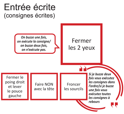 Le principe de base consiste à proposer une règle au patient, par exemple : « Quand je buzzerai une fois, vous ne ferez rien, quand je buzzerai deux fois, vous ferez. »