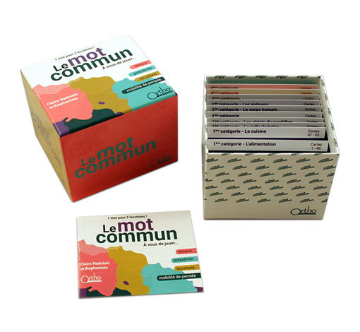 - Des cartes classées par thèmes et par niveaux, et numérotées pour le suivi du patient.