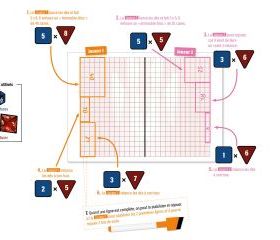 • 5 grilles effaçables de tailles variées permettent d’adapter la durée du jeu et de tenir compte du niveau de connaissance des tables de multiplication. Si l’enfant ne les maîtrise pas encore toutes, il peut être préférable d’utiliser le dé à 4 faces. En revanche, pour les enfants plus avancés dans les apprentissages, on utilise les deux dés à 10 faces (ou tout autre dé) et une grille adaptée.