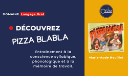 "Pizza Blabla" permet de travailler la conscience syllabique/ phonologique en créant des logatomes par manipulation de syllabes.